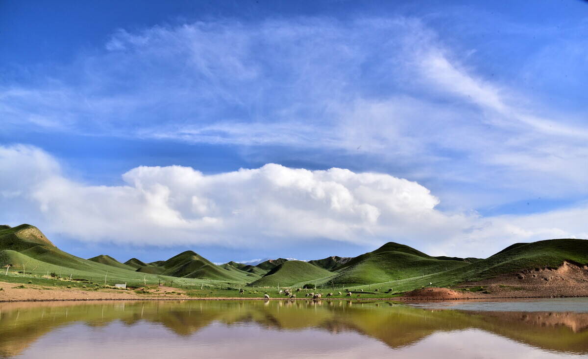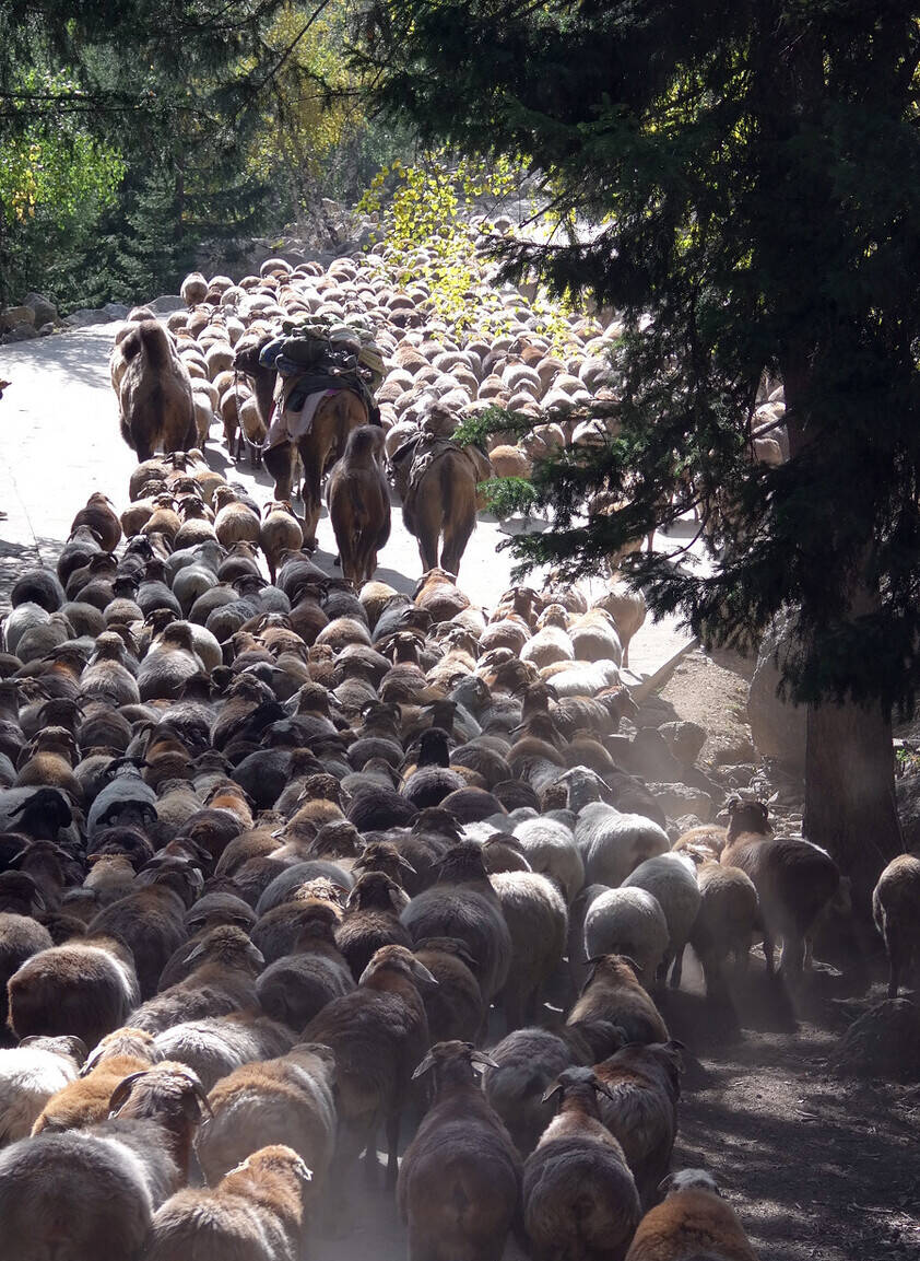 每年6月前后,福海的夏牧场,会迎来超过1000万只牲畜,这样大规模的转场,景色蔚为壮观。