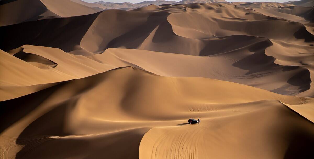 这是中国最大的沙漠,面积加起来相当于安徽、浙江、江苏三省的总和,塔克拉玛干在维吾尔语中是“进得去,出不来”的意思。
