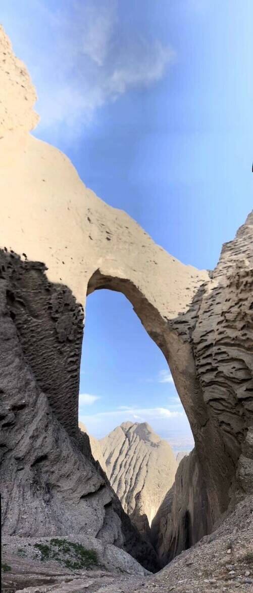 阿图什天门屹立在一片旷野之中,457米的高度,让它当之无愧,成为地球上最高的天然石拱门。