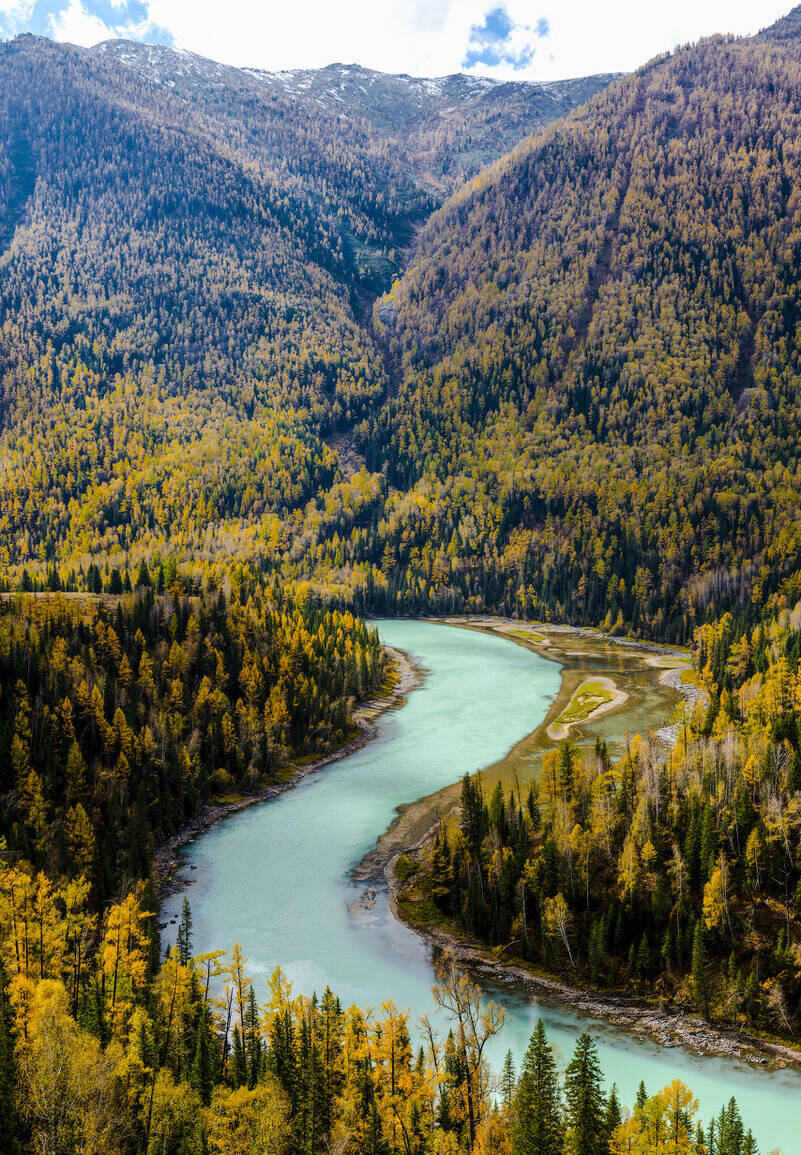 这是大地描绘出来的,一副蓬勃的生命图景,细长的蓝色河流,蜿蜒流向天边。