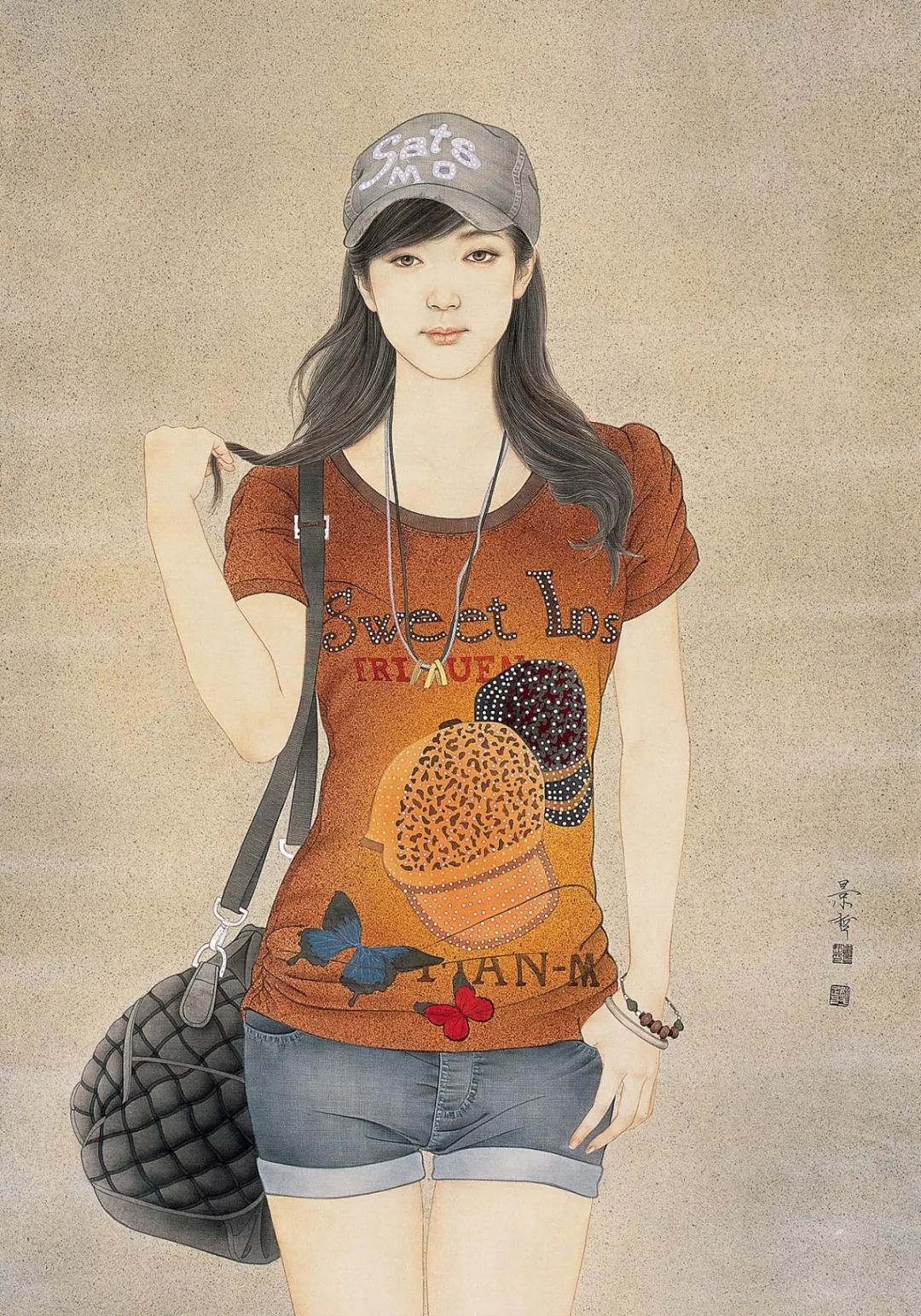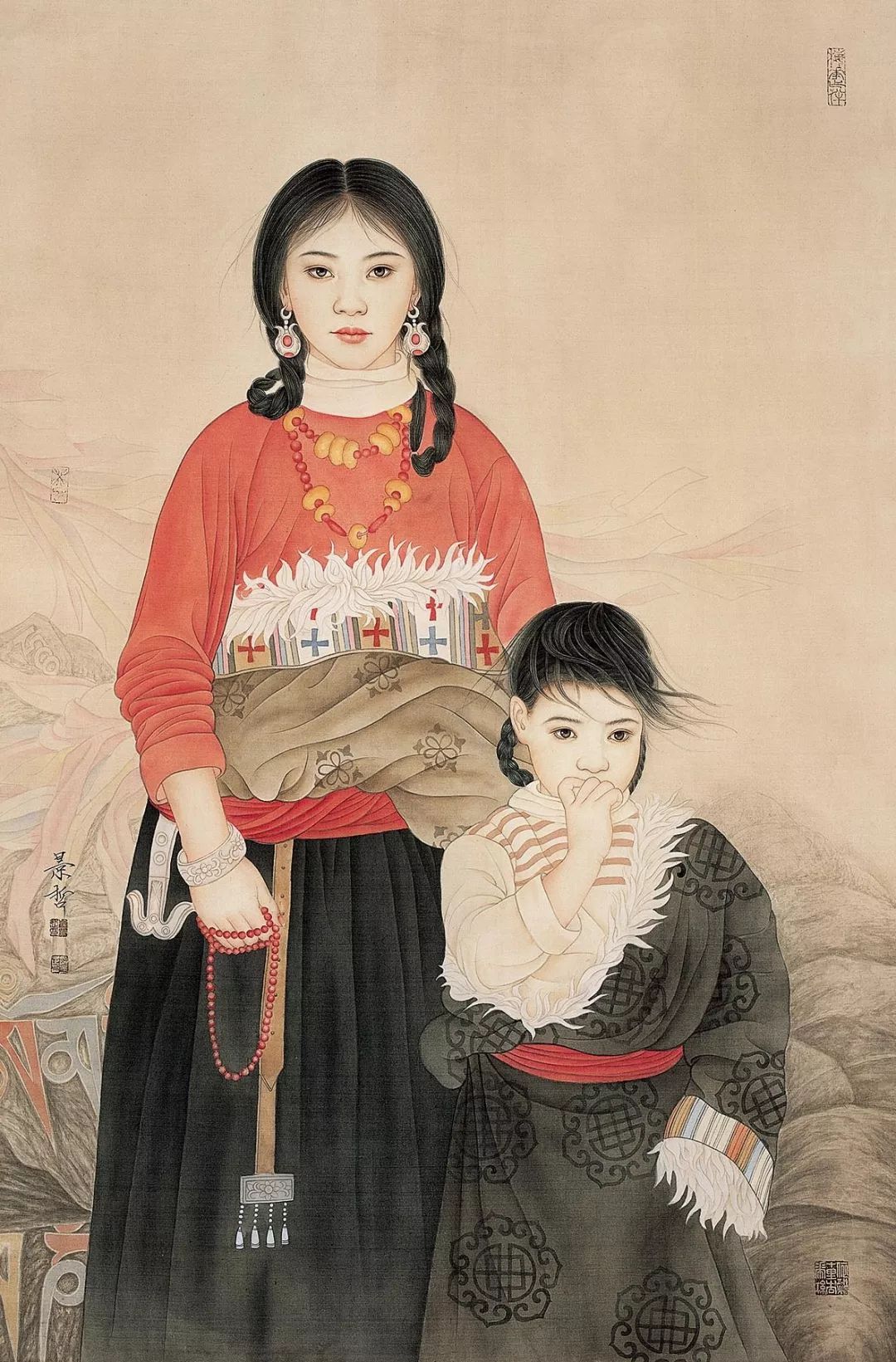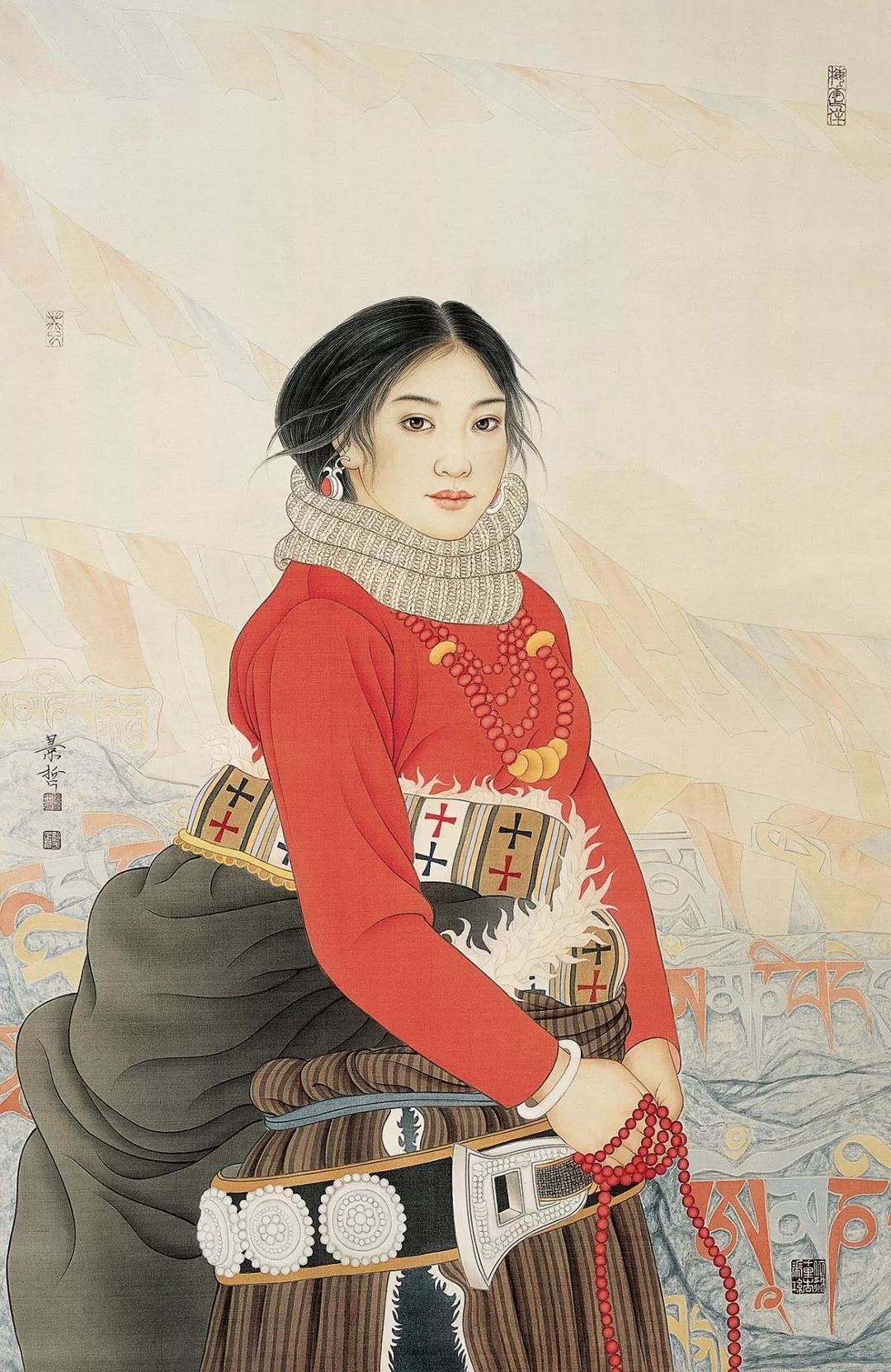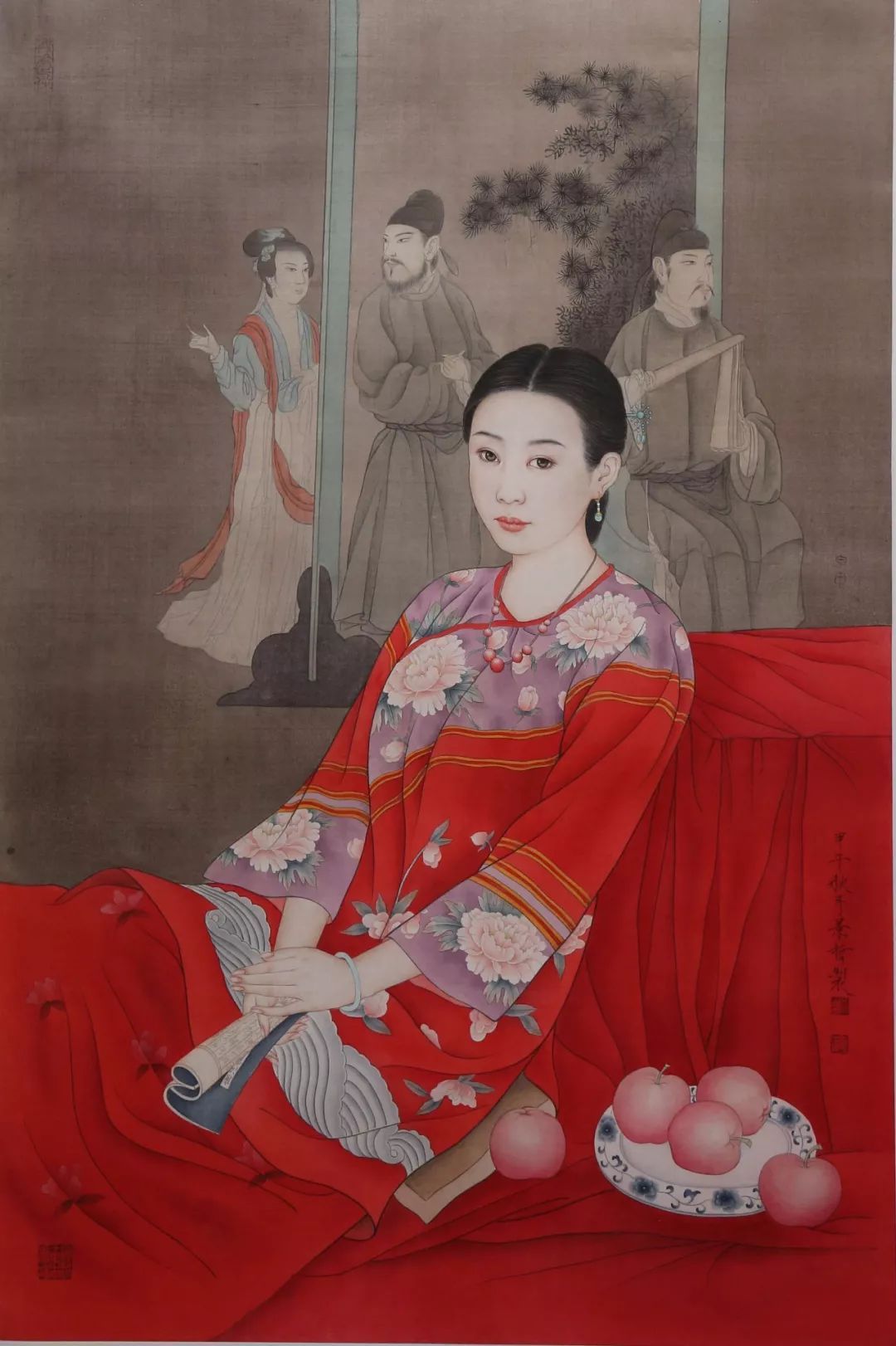 崔景哲的现代仕女画的确富于情韵,因为他的艺术承继了我国绘画“缘情”的传统,画中的情事真情、意是真意,他画的是自己最真诚的内心世界,甚至是他情感与志趣的心性提升。