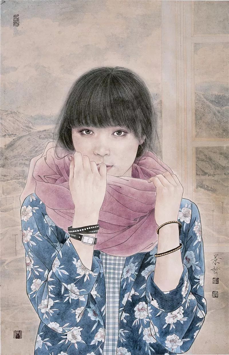 还有好些对当代青年或是大学生的描绘,画家在把握青春气息的同时,更注意到了对人物内心世界的揭示,青春是美好的,可在青春期还有那么多的焦灼,躁动、不安、期待、甚至惶恐,如果艺术家看不到这美好中的另一面,便无法捕捉人物内心世界的活动,无法反映当代青年人灵魂深处的蜕变,因为打动人、感动人的不仅是微笑和外在的甜美……故而景哲还有许多漫长的路要走,正如他告诉我的那样,“一次次成功,并不成就事业的永恒,只有不断享受耕耘的过程,才会获得精神世界的丰收。”