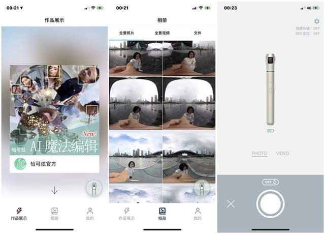 怡可拍360°全景相机拍摄很方便,机身一共设计了3个实体按键分别是开/关机键、拍摄键、照片/视频模式切换键,这几个按键设计很简单明确,可以轻松上手,即使不连接手机也可以拍摄,使用起来简单粗暴。