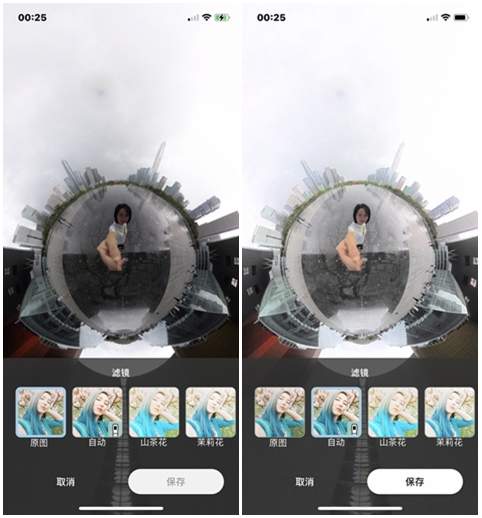此外,怡可拍还支持单次30秒的全景视频拍摄,视频最高支持2880*1440、30fbs的画质。你有没有想过一边走路一边查看四周的环境动态?怡可拍的全景视频就可以轻松实现,那种VR的即视感,沉侵式的感知世界。