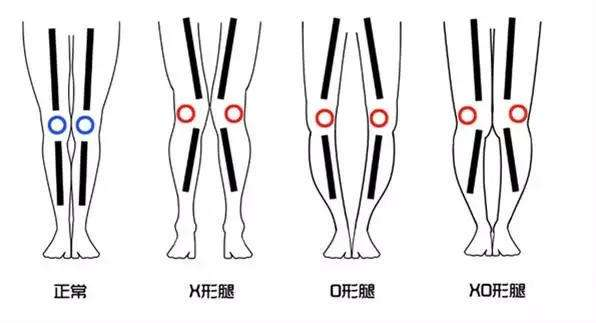 相应的,O型腿是膝内翻,以两下肢自然伸直或站立时,两足内踝(或者双脚)能相碰而两膝不能靠拢为主要表现。
