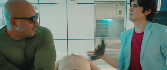 影片开始,有点痞帅的,穿着红布兜罩天蓝色西装的寒羽良就和一个光头壮汉打了起来,但却是在手术室里面,里面还躺着半裸的等待手术的男子,生病已经够惨了,还要被他们踢来踢去。