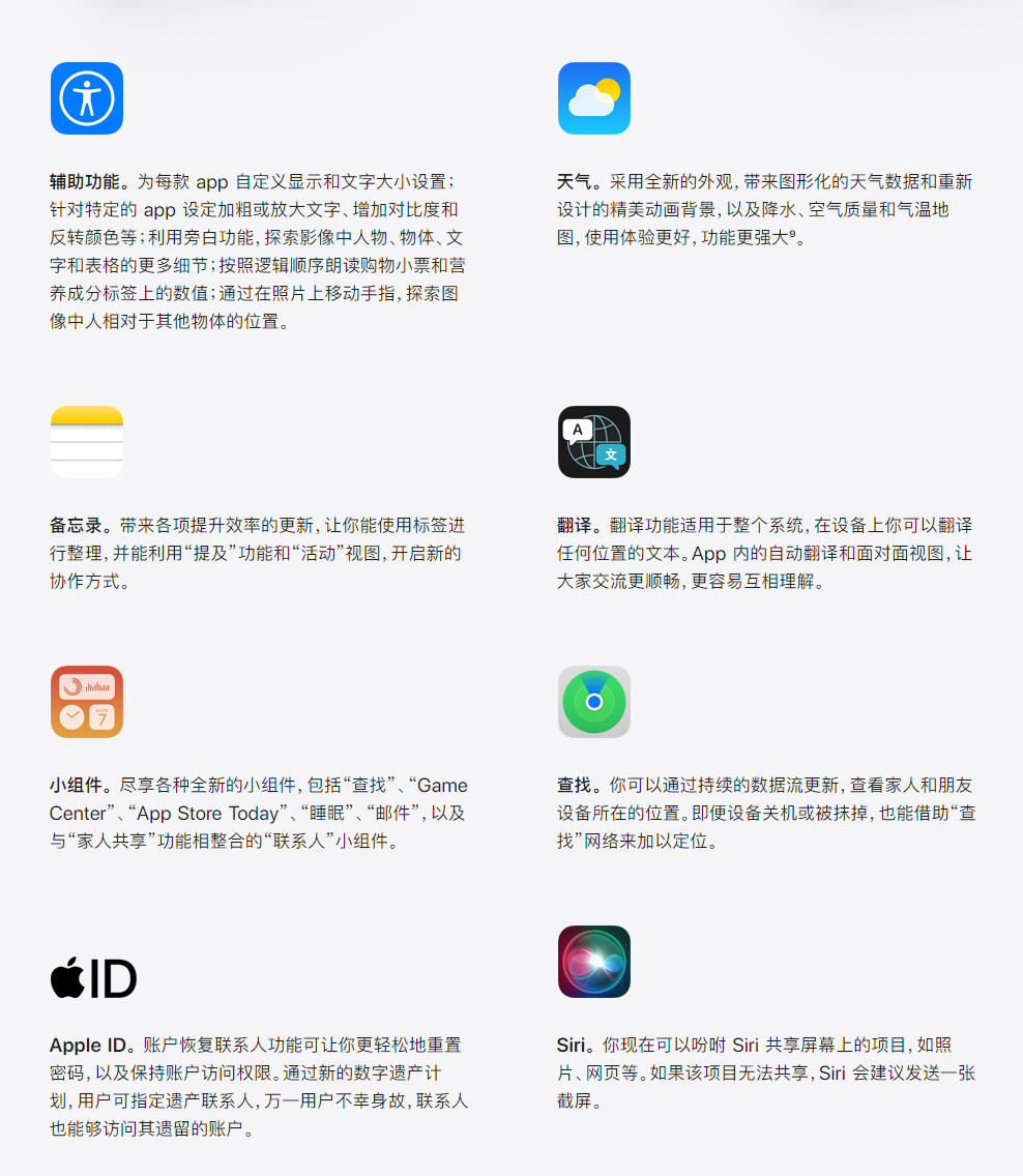 地图 App 推出探索世界的美妙新方式,重新设计过的天气 App 以全屏模式及更多图像展示数据,钱包 App 增加了对家庭钥匙和身份证件的支持,Safari 浏览器的新标签页栏设计和标签页组进一步简化上网的体验。