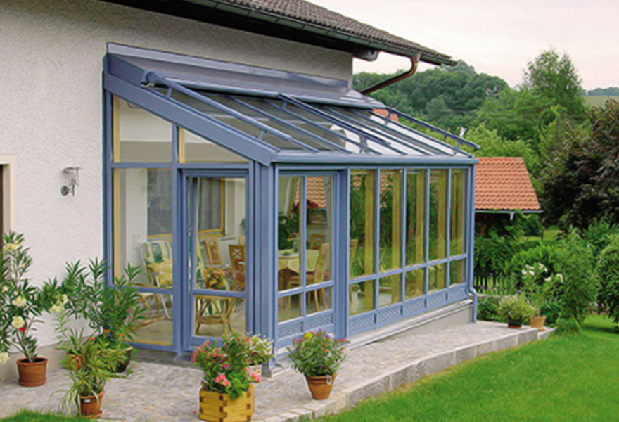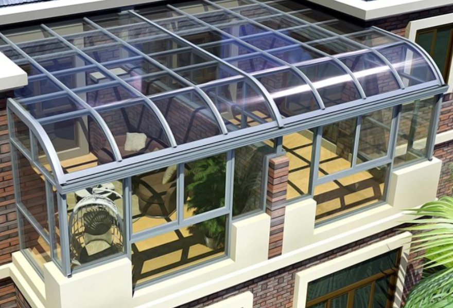 其组成为:框架结构、天窗、铝塑门窗和智能通风系统。钢结构可喷涂方钢、不锈钢、铝型材、塑钢。天窗可采用钢化玻璃、钢化夹层玻璃、中空夹层玻璃、彩钢。阳光房的形状有平屋顶、尖屋顶、斜屋顶、弧形屋顶、山墙屋顶等。通风系统可选择德国进口的窗式和壁挂式智能通风系统。阳光房的特点是全玻璃结构,所以必须具备隔热和防辐射的功能。高性能中空low-e玻璃、真空玻璃和中空夹层玻璃可大大减少室内外传热。并有效防止太阳的紫外线辐射。