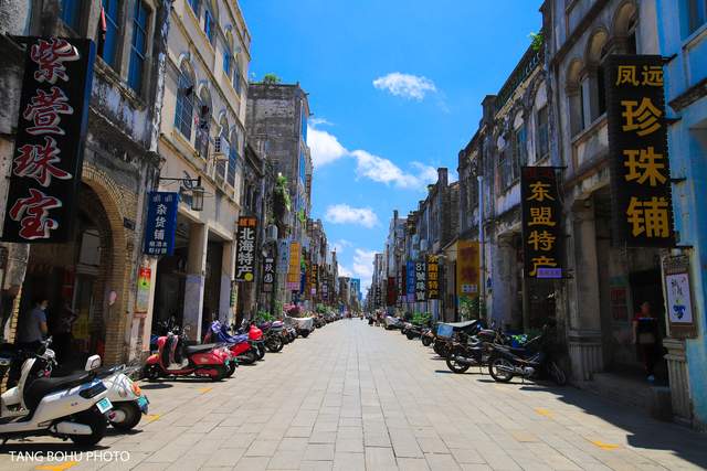 北海老街是一条有二百多年历史的老街,全长近1.5公里,沿街全是中西合璧骑楼式建筑的商业老街。这些建筑大多为二至三层。这些骑楼和厦门中山路的骑楼有些像。临街两边墙面的窗顶多为卷拱结构,卷拱外沿及窗柱顶端都有雕饰线,线条流畅、工艺精美。临街墙面部不同式样的装饰和浮雕形成了南北两组空中雕塑长廊。街道两旁美食店很多,这里成为中国岭南最长,最完整的老街之一。老街留下了过去的痕迹。是来北海旅游的必打卡点。