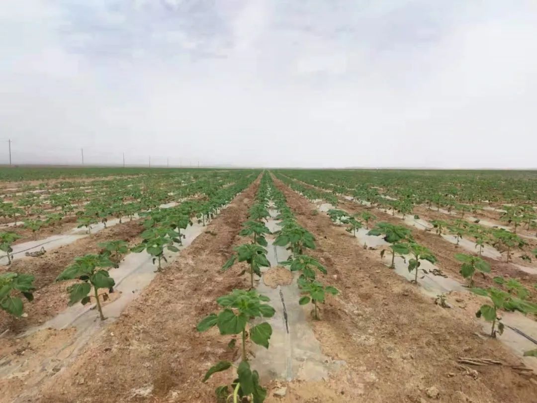 目前,园区一期项目进展顺利,1号、2号两个9万立方米蓄水池、73公里高效节水地下管网、23公里田间道路、4.5公里临时防洪坝已建成并投入使用,7.1公里的金葵大道正在施工建设。2020年,园区种植向日葵6000亩、油菜和荞麦共2000亩,其中食用葵亩产量达到250公斤。