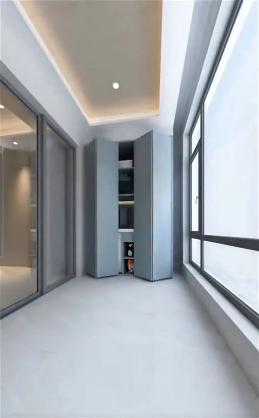 平日里不使用的时候,关闭侧面柜门,有效避免阳台的杂乱感,让室内更显整洁干净~