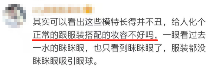 有网友认为模特长相没问题, 造型师把模特的眼睛“搞”丑了。