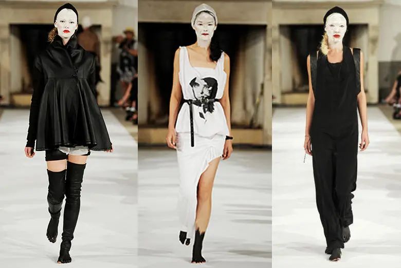 2012年丹麦时尚品牌Anne Vest在哥本哈根时装周上, 给模特们敷上墙白色“面膜”,就推出来走秀了。
