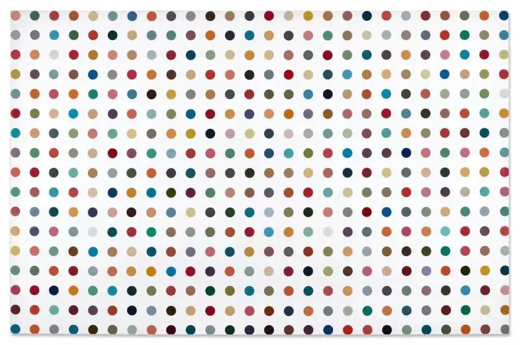 他的很有代表性的作品《圆之舞》是以黑色作为背景而在中间则有一个蓝色的圆形,在周围则有大小,色彩各不相同的众多彩色圆圈图案,或重叠、或并排、或围绕,以一种不规则的排列组合形式进行布局,好像将一个个在跳圆舞曲的舞者简化为了一个个的圆圈,在一个圆形的舞台上旋转跳跃,然而正式这种简化抽象的形式才让观者有了更多的想象力与创造力,并不自觉的加入了新的音乐形式的代入感。