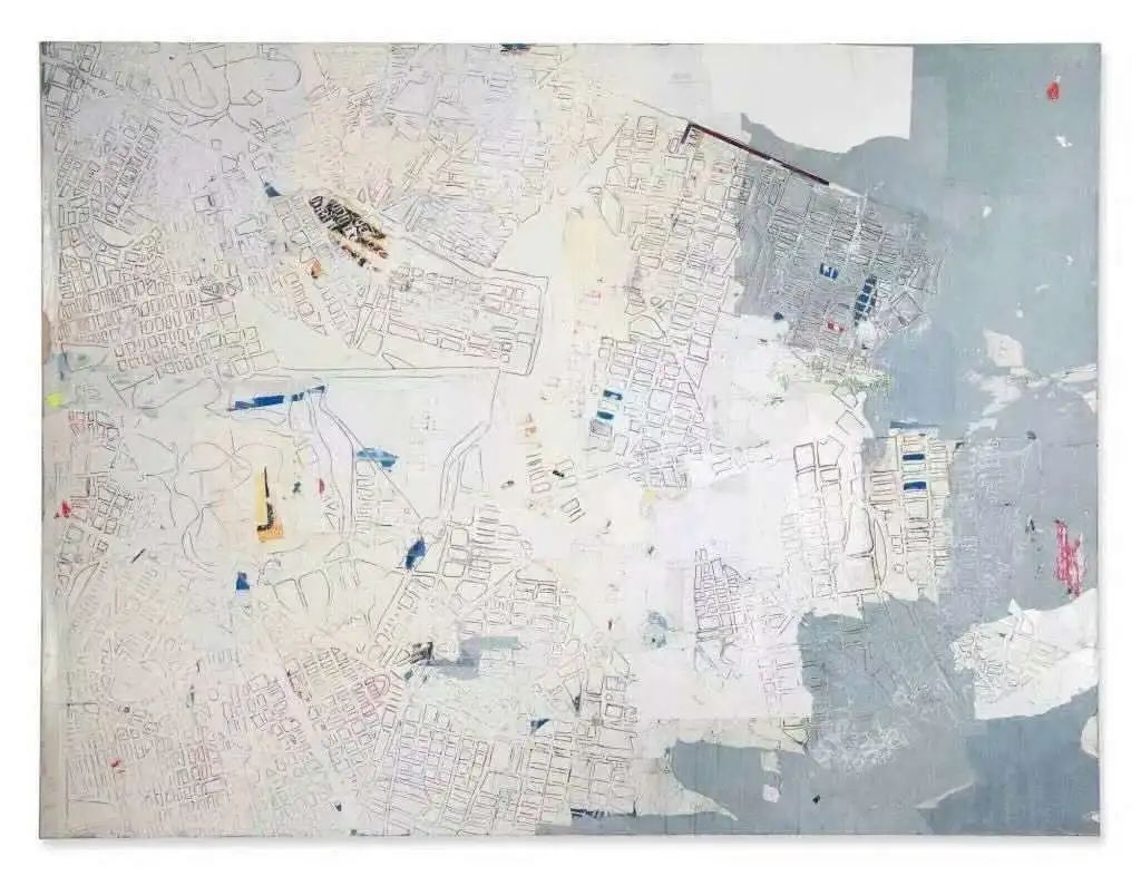 复合媒材拼贴画布,228.6x 305.1cm,2005年作