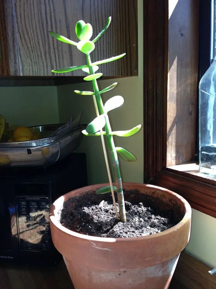 室内养护的植物之所以会出现植株徒长的情况,其实就是由于缺乏光照导致的,也可能是土壤经常潮湿,枝叶之间的间隙会不断拉大,枝条会长得比较嫩,叶片的颜色也会变成嫩绿色,枝叶的颜色越来越淡,这样的徒长的植物长势特别弱,就像豆芽菜一样,是经不起风吹雨打的。