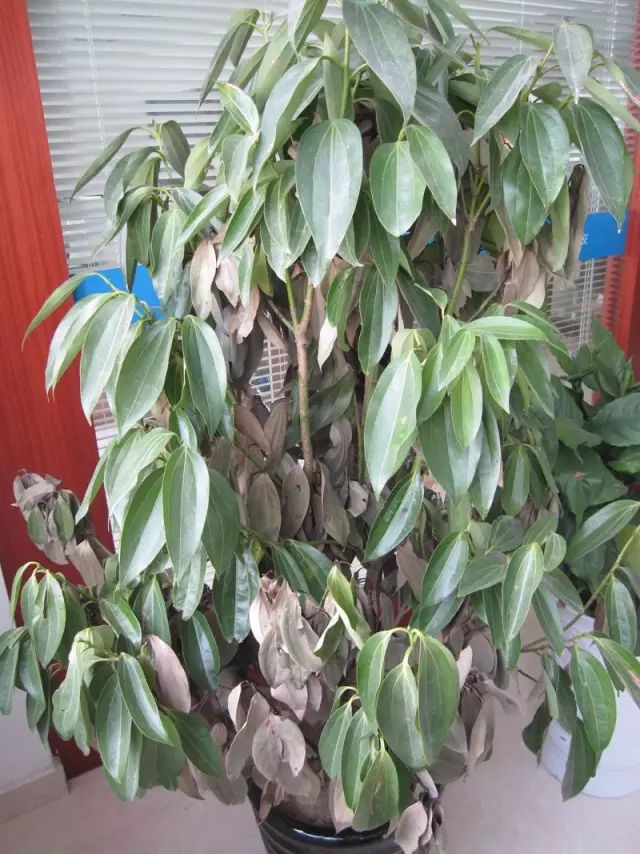 植物的叶子边缘干枯或叶子尖端干枯,一般就是由于室内空气干燥,环境通风不好引起的,这种情况只能逐渐改善,可以将一些干枯的严重叶子剪掉。