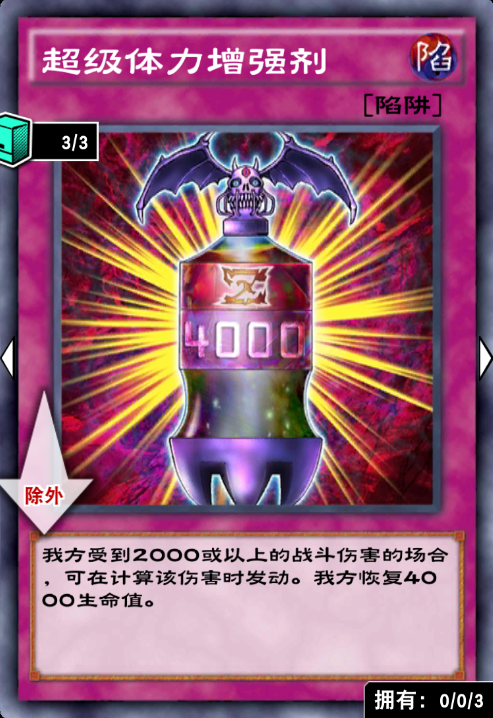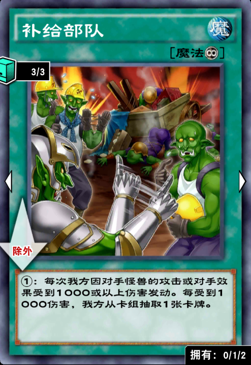 接下来要说的就是这套卡组最为精髓的地方了,补给部队这张卡是这套卡组的神来之笔,因为有了足够的血量支撑,使得补给部队成为了整套卡组最为关键的过牌手段,搭配超级体力增强剂的效果我们可以在面对超魔导或是机甲等高攻体系的时候毫无顾忌地稳吃对手的伤害,之后可以根据受到的伤害来快速过牌,进而再度埋伏更多的魔陷卡牌或是过滤大法师的组件。