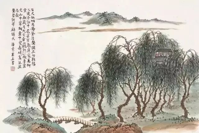 青绿山水画:中国山水画的一种,用矿物质石青、石绿作为主色,有大青绿、小青绿之分。前者多钩廓,少皴笔,着色浓重,装饰性强;后者是在水墨淡彩的基础上薄罩青绿。