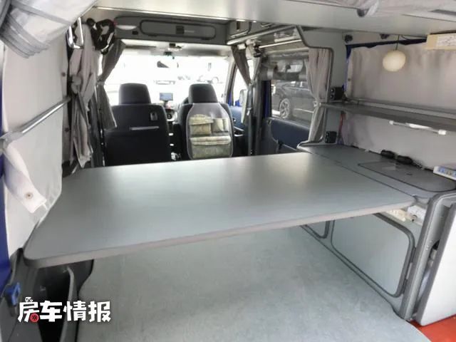 车厢后半部平时可用来作为储物舱使用,晚上需要休息的时候,就可以将前方的乘客座椅放到,与后方的床垫共同搭建出一个休息的区域,不过整体的空间比较狭窄,睡一个成年人还是可以的。