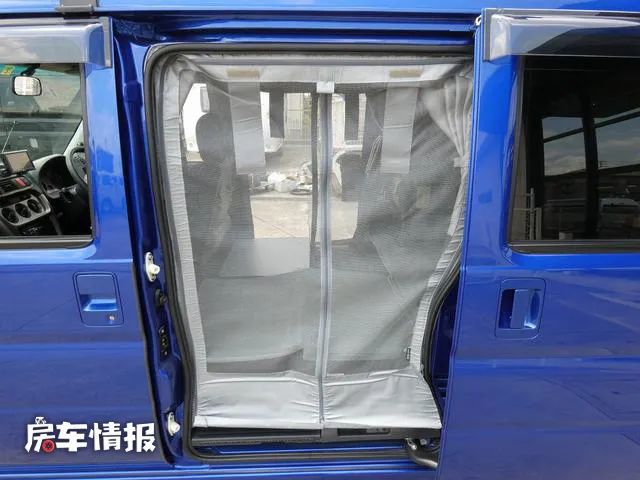 车厢两侧的侧滑门都可以进入车厢,在车厢内还提供了一排双人座椅,平时行车时也可以坐人,并且两侧的侧滑门都带有防蚊网。