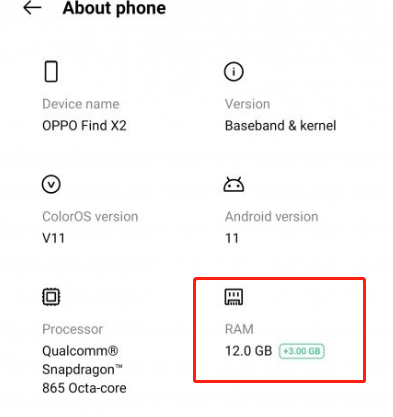 设置完成后,「关于手机」界面的内存一项将会显示为原生内存+扩展内存(例如图中的 12GB+3GB)的形式,并不会将两者进行合并。