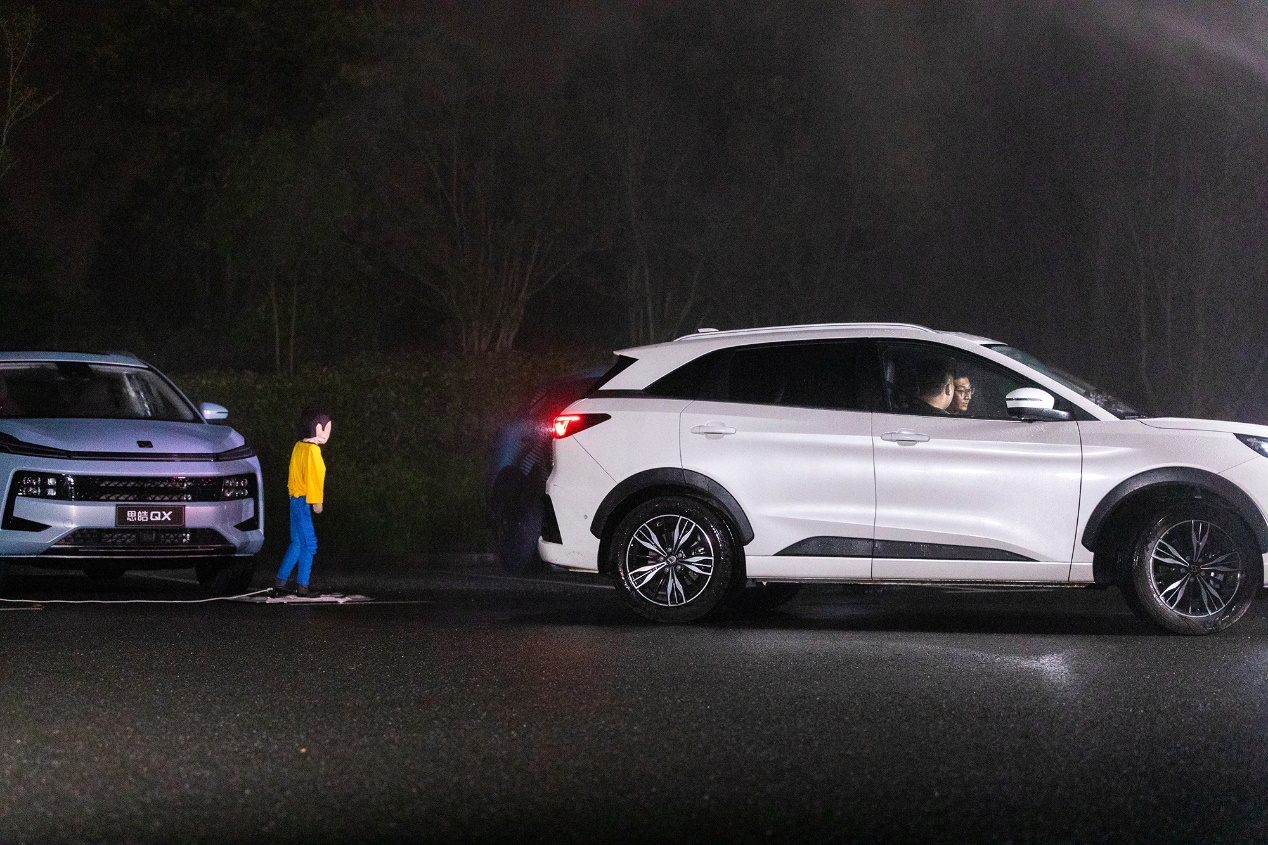 全天候测试自然少不了夜晚和极端恶劣环境,夜晚暴雨天气的挑战难度很大。在这种天气下,后视镜、侧窗都处于模糊状态,泊车只能通过肉眼进行判断,而此时车辆后方突然出现障碍物,驾驶员很难做出反应。面对这种恶劣天气,思皓QX通过摄像头和雷达对车辆周边环境进行无死角监控,对突发情况可以做到提前发现、及时反应。搭载毫米波雷达和视觉融合的车位识别技术,能够通过对视野环境进行分析,进而精准判断车位,短时间内完成泊车入位。