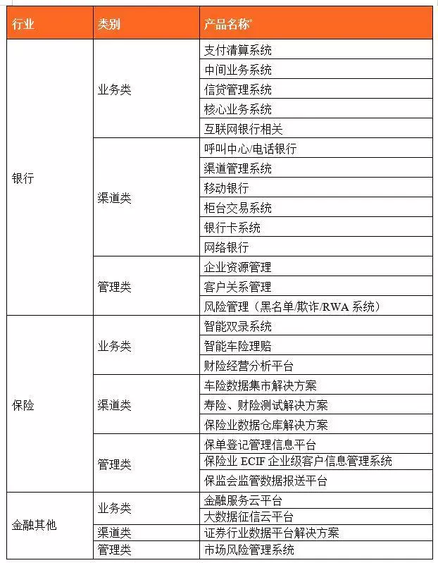 表2:文思海辉银行、保险及其他金融系统和服务(按行业分)