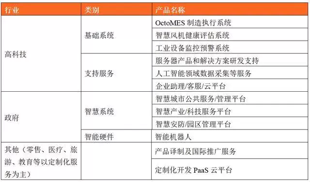 在制造业、通信、汽车等高科技领域,与RPA 领域头部玩家Blue Prism结盟,共同开发面向未来的软件机器人;与 SB Cloud达成合作,构建云上 ERP “Odoo”系统,助力亚太客户实现流畅跨国通信;推出 “Octo工业互联网套件”,帮助企业优化工厂资源配置,降低生产营运成本,提高生产效益和质量;推出智翼云数字化创新平台,为资源管理、检修计划、运维检修、标准规范、监督评价和决策支持六大模块提供支持。
