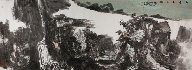 气韵生动是感受一幅山水玄机要妙的重要气质。气韵不可直接言明,但是可以叙之感受!有气韵山水灵动有活性,无气韵的山水匠气横陈,满目烟火气,呆板缺少生趣。一件一件游览张东升先生的山水作品,气韵之妙扑面盈心,绝然是生动无尚的佳作。以水为道,以墨为器,调出水墨浓淡干湿焦可以层层复沓作积墨,以成山水钢打铁铸一般的质感。也可以水破墨,墨破水,湮洇富机理,天质自然,遂心应手画山水的意象萧萧。