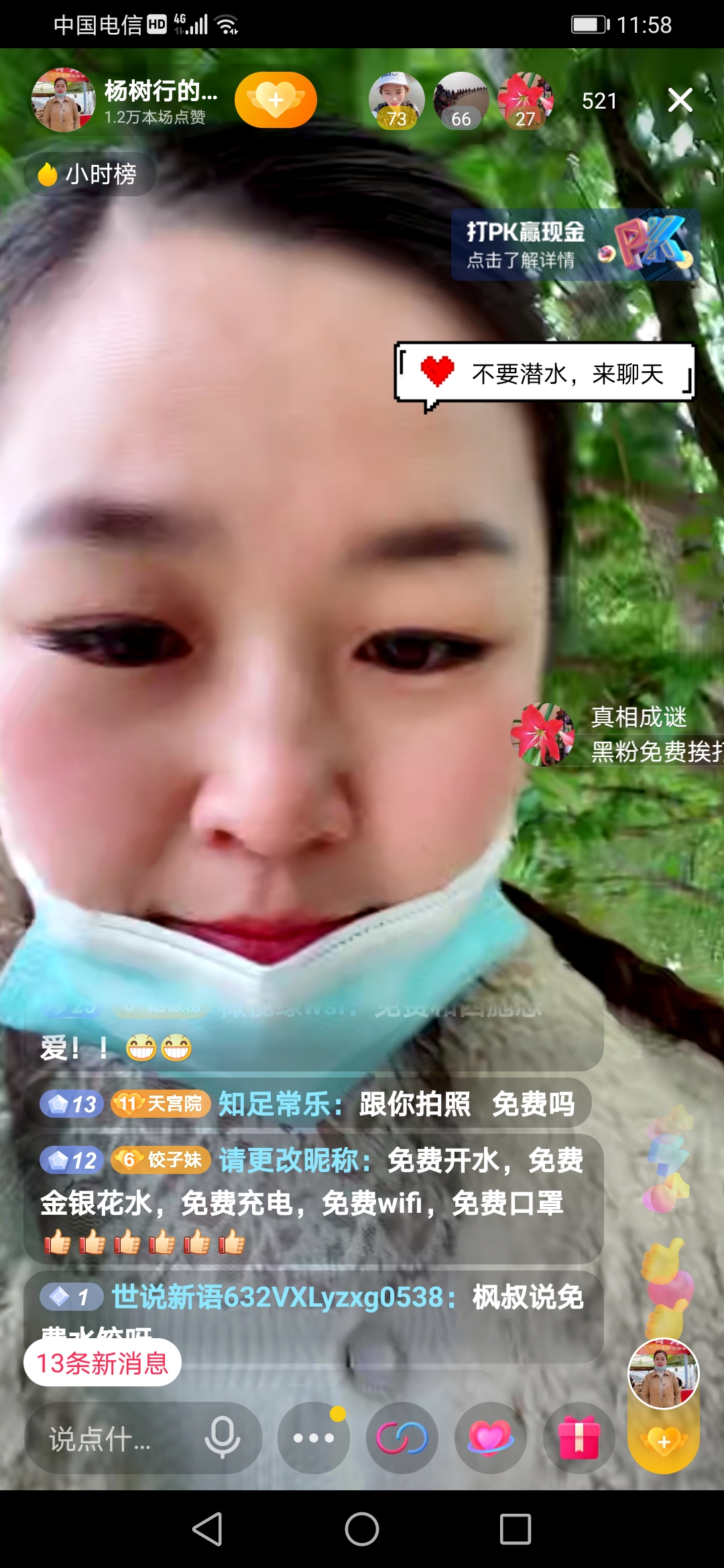 女主播让杨树行村粉丝在直播间里打1,立刻满屏都是“1”。