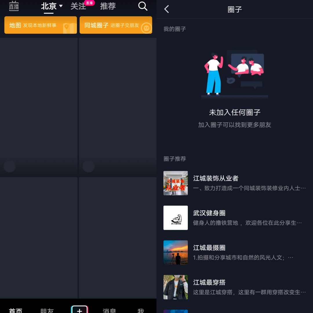 Tech星球体验后发现,抖音圈子的入口位于同城界面内,与抖音地图并列。
