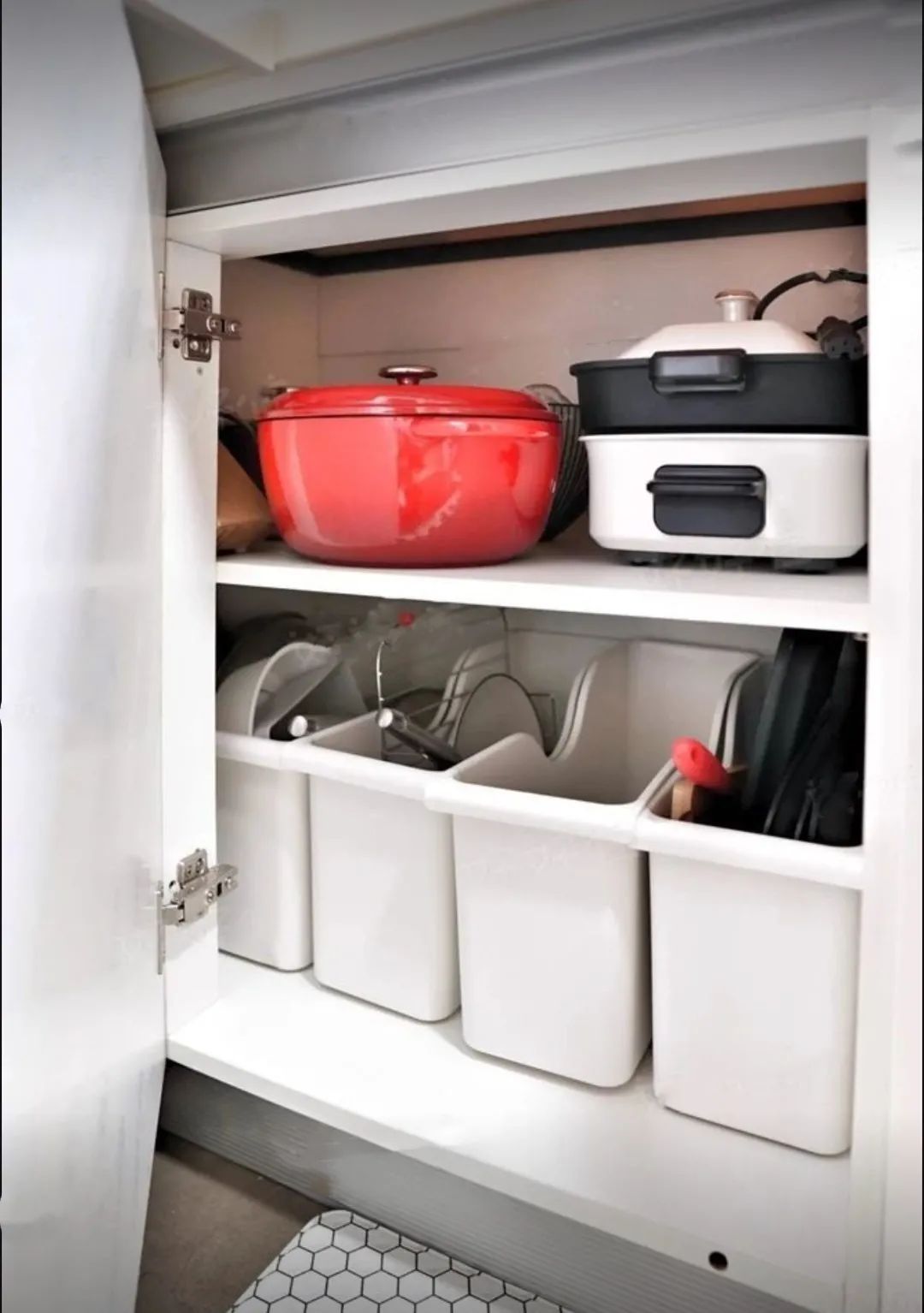 中间的两层隔板是可以抽拉的设计,避免了橱柜太小操作不方便的问题,打扫卫生也非常方便!