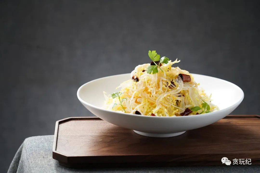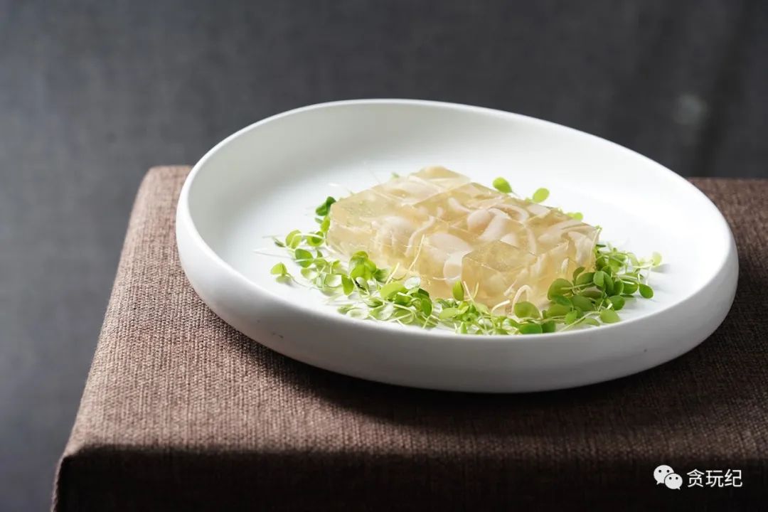 开胃菜四道,猪手皮冻先声夺人,没有往常皮冻的那种胶质感,而是满满的充满肉质感的胶原蛋白,蒜酱,一口东北之魂,开场优秀;海蜇白菜丝,提神爽朗,前菜部分轻盈婉转;鱿鱼脆耳是一道“功夫”凉菜,在鱿鱼中酿出来还是很出彩的;拆骨肉拌豆芽,豆芽真的可以掐出水那种嫩,真的是东北沃土。