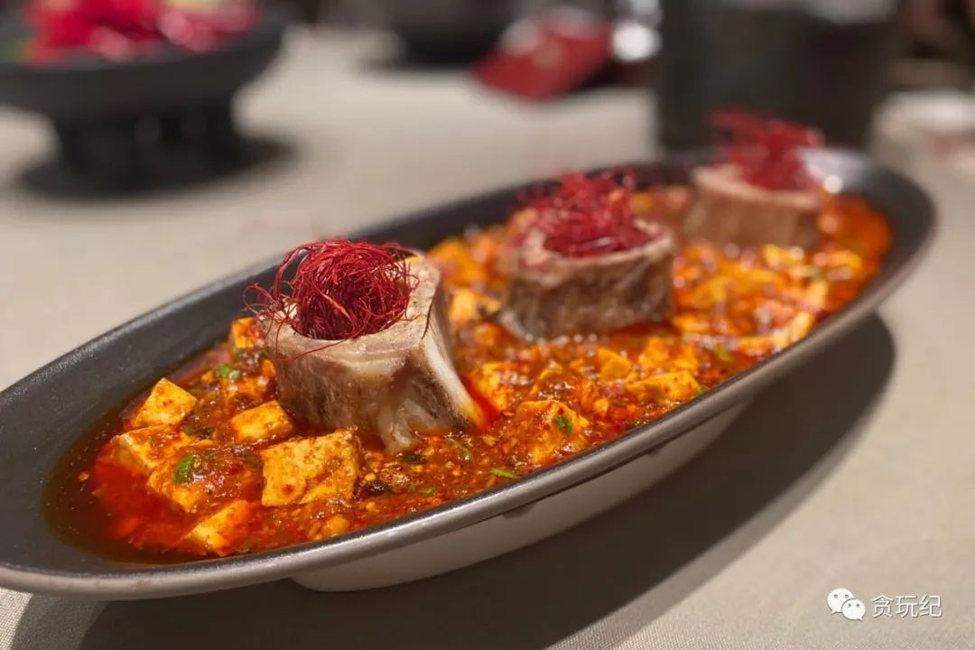 麻婆豆腐绝对是川菜招牌菜一般的存在,更进阶的本地做法会加入成都的市花——脑花,显然蜀锦华堂的做法更为另辟蹊径——牛骨髓烧手工豆腐,他们加入了北方人民喜欢的牛骨髓,无论是气势还是口味上分分钟提升到了Plus级别。古法宫保鹅肝点菜的时候并没有收获多少的拥趸,因为鹅肝看来其实是西方主要的食材,而且鹅肝的肥美如果只是靠想象的话,完全没法联系在一起,直到端上桌来,鹅肝被切成小块之后裹住薄薄一层的面糊炸过,味道被锁紧在食材里,宫保的风味萦绕周身,居然有种天作之合,令人惊艳的。