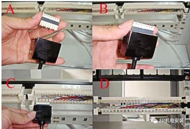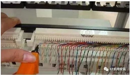 4、线缆裁剪后就可以将线缆打入配线架,打接模块需要认真、细心,否则会出现模块打接不成功,如果出现打接不成功,要小心处理,避免实施工程中出现线缆二次剥线。