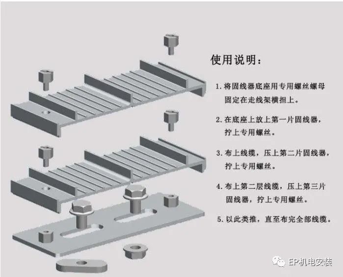 4.3理线夹的作用:理线夹,又叫固线器、压线器、固线卡或线缆固定器。顾名思义,就是用来固定线的器具。使用的理线夹对线缆进行施工,可以很方便的对各类线缆进行分层分组,安装后线路整洁美观、散热良好。解决了施工中各类线缆相互交叉相互影响的问题;还能够尽量分散线缆承载的重压,保证线缆的使用寿命和安全周期,消除火灾隐患。固线器可方便拆除、易安装,彻底解决传统固线方式导致线路无法更换的问题。新型固线器可方便更换及调整线路,并且保持线路安装整洁美观。