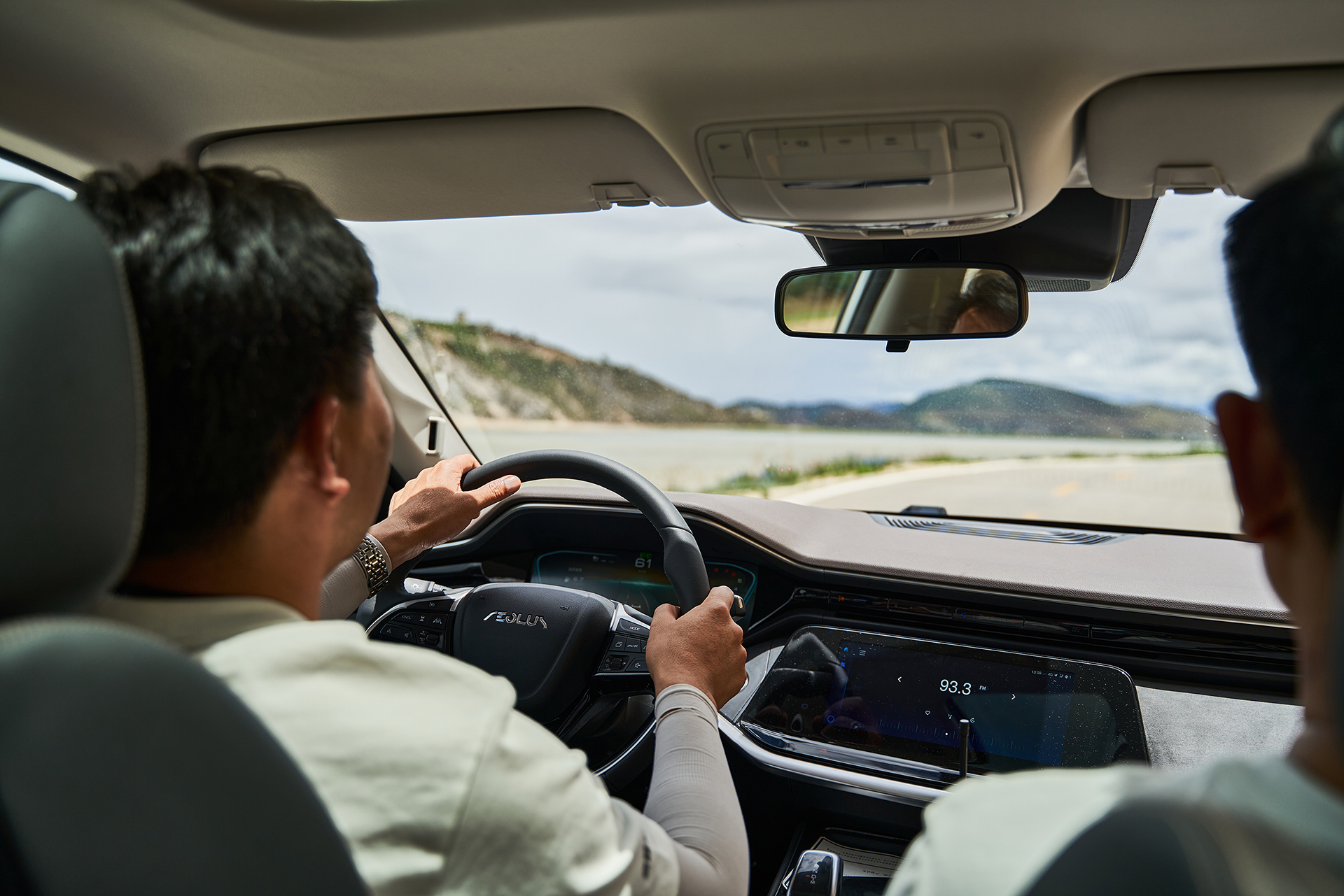 接下来是一段50多公里的山路路程,双向单车道,道路也比较狭窄,在这样的路况行驶,切换到运动模式是比较合适的,奕炫MAX搭载马赫动力1.5T发动机,最大功率150kW,最大扭矩320N.m,百公里加速7.5秒,通过MSC高效增压技术,实现智能调节进气量。