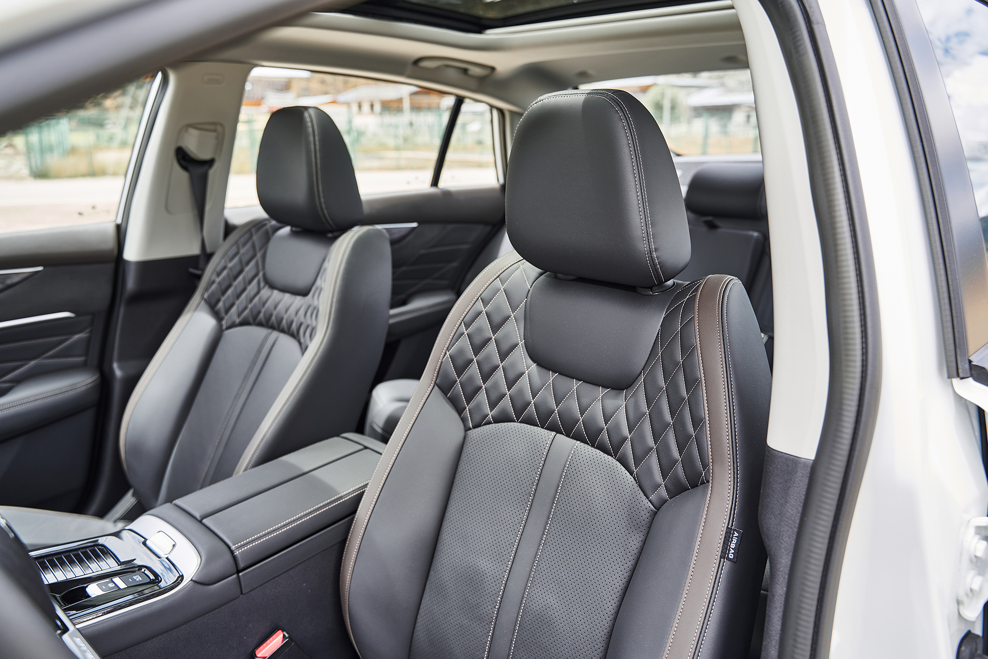 奕炫MAX拥有零压舒适乘坐感受的科技座椅,与人体曲线贴合,健康的发泡材料,透气环保,浅色缝线搭配菱形花纹,结合不同色系的皮革装饰两侧,整体看起来不错。令人感到惊喜的是在这个级别的车型上,主驾座椅带有座椅按摩功能,在旅途中大大缓解疲劳。