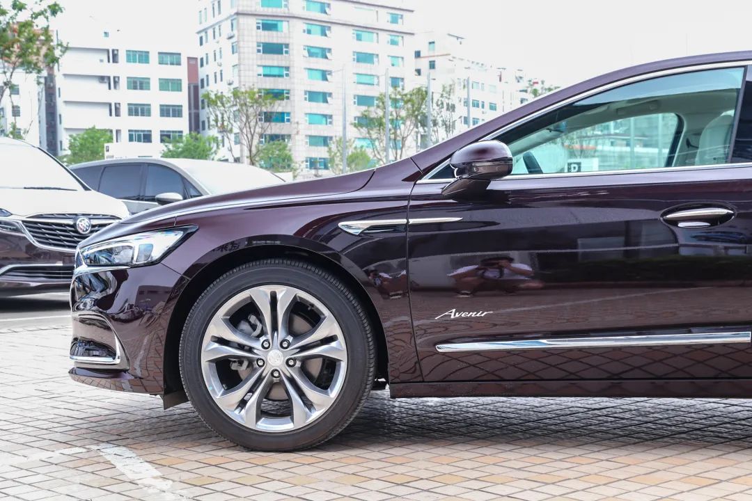 侧面看去,以皇冠造型为灵感的19吋铝合金轮毂在视觉上气势磅礴,配合整车流畅的车身线条,驶过面前时,君越艾维亚先享型兼容了大气与优雅的身形,很难不让路边人眼前一亮。而前排两侧的翼子板都烙上了独有的Avenir车徽,为整台车的身份注脚。