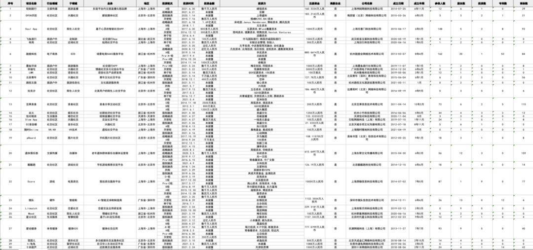 由于社交APP行业极易出现被更大的公司或上市公司并购的情况,以补足自己在某个细分领域的用户和产品线。而一个项目一旦被收购(比如【探探】被【陌陌】收购,【积目】被【映客】收购)后,其自主权和独立运营权甚至发展方向都会被很大得限制。而上市之后做了转型(还拿【陌陌】举例子,目前陌陌的核心业务已转向了直播)且不以社交为核心产品定位的项目。还有很多以游戏作为主要形式仅包含社交功能但对外称自己为社交项目的(如【派派】,本质是一个具有社交属性的游戏公司,盈利模式和核心玩法也更趋向于游戏)。以上这些类型的企业也已被我们剔除于本次统计范围。