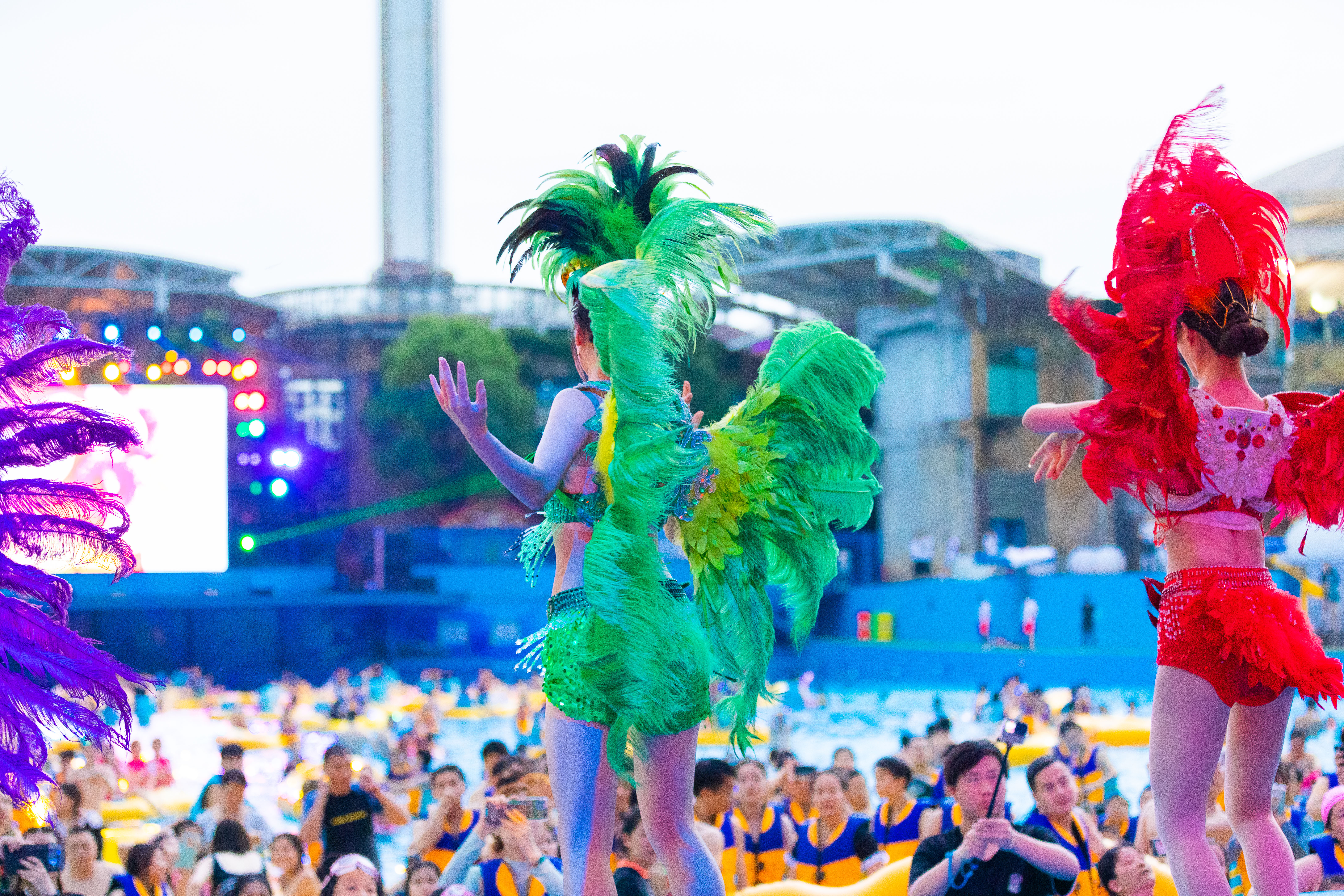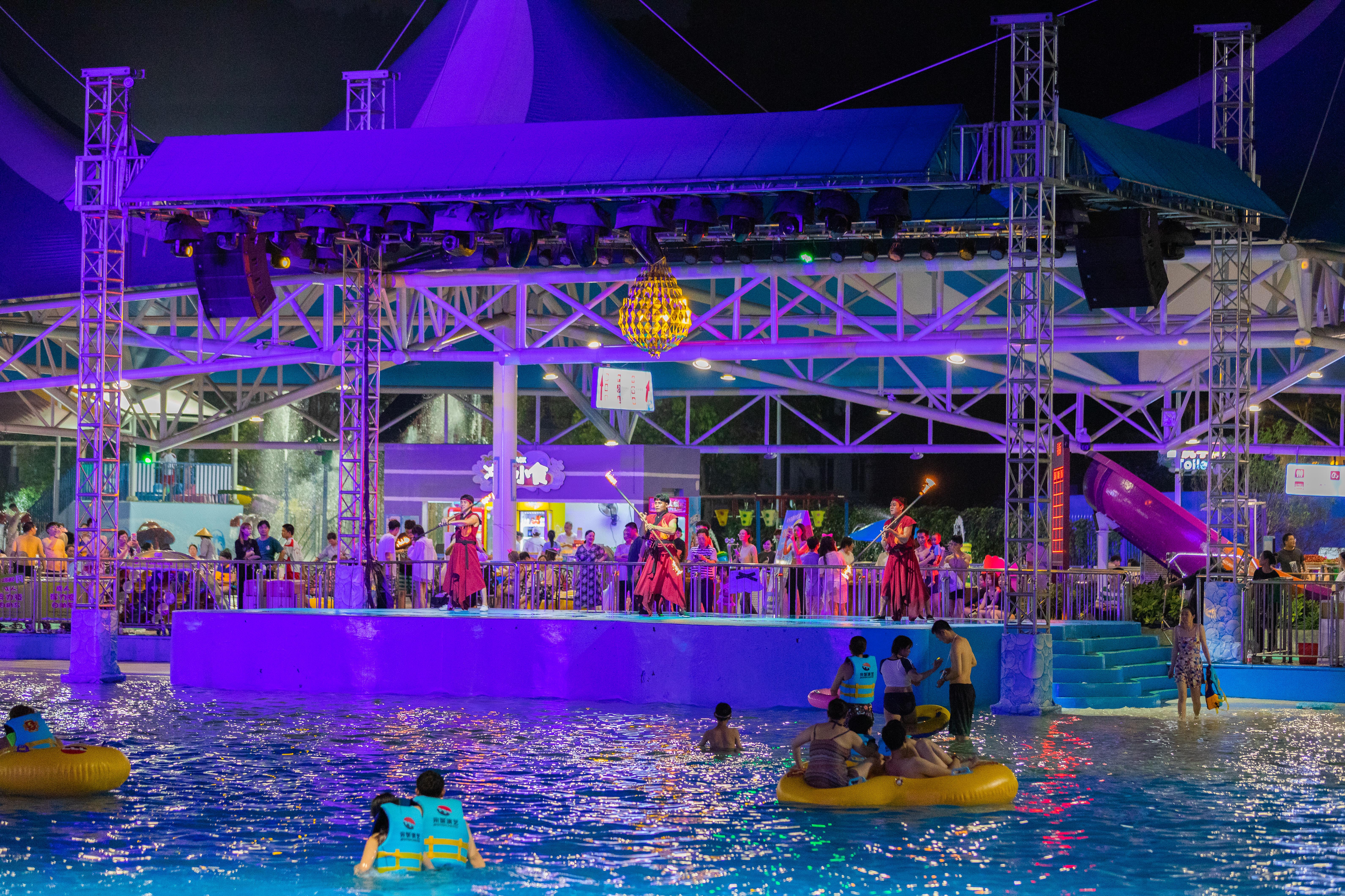 水公园的夜晚也是超嗨的,电音泼水节燃爆整个夏夜。每天六点开始,精彩纷呈的演出不断,还有狂欢大巡游,劲歌热舞,都是俊男靓女,一定不要错过。