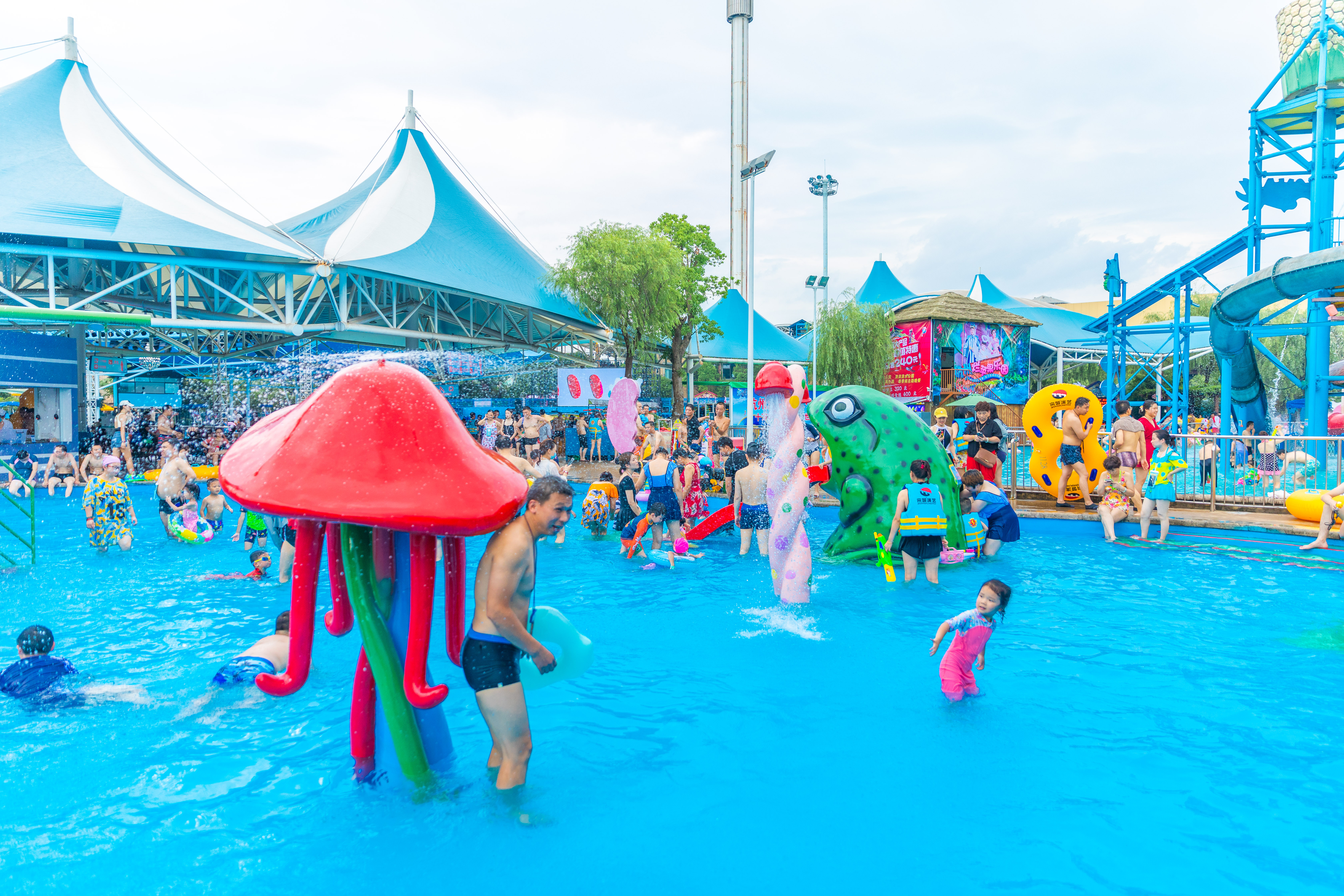 换好泳衣,大家便迫不及待地开启了玩水模式。水乐园很大,里面有儿童嬉水区,冲浪池、超级大喇叭、滑板冲浪、浪浪水寨、漂流河等数十项水上游乐项目,总有一款适合你。