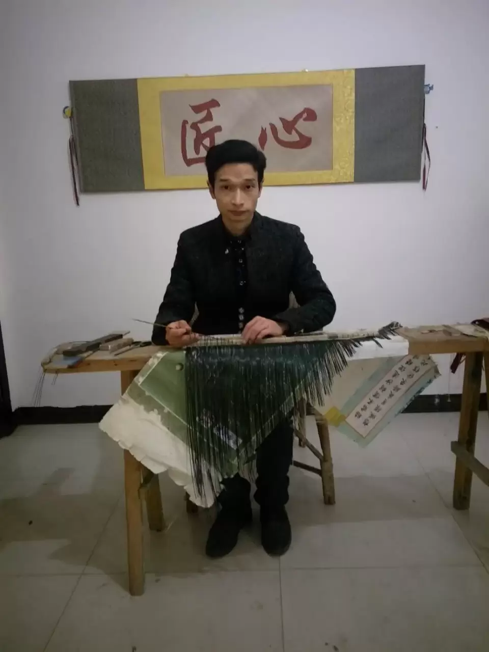 张墙林,自幼出生于竹编世家,16岁起跟随母亲学习竹编技艺。经过多年的学习和专研熟练的掌握了竹编字画,瓷胎竹编,立体竹编等编织技艺。他在生产创作时全凭双手和一把刀进行手工编织,有时制作一套竹丝扣瓷耗时需达数月之久。现在主要设计和生产各种竹编艺术品,有瓷胎竹编的茶具、花器等瓷胎竹编产品以及竹编的其他产品。