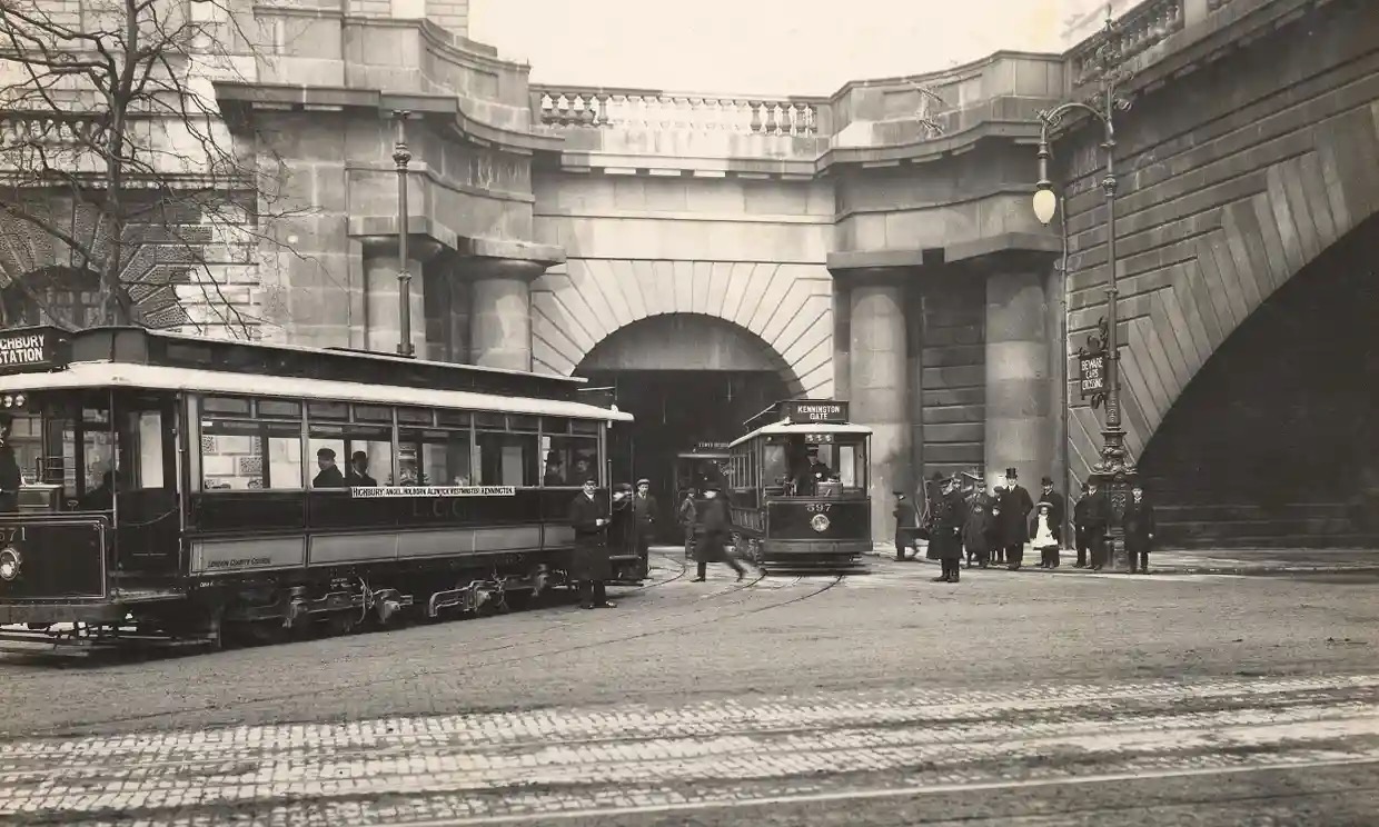 鲜少有人知道,这里曾是伦敦有轨电车网络的支点——Kingsway车站。车站由伦敦郡议会于1906年建造,是当时霍尔本地区和奥德乌奇(Aldwych)地区贫民窟清理和重建计划的项目。车站投运后,人们能在地下换乘往来于城市南北两端的双层有轨电车,在后来整整46年里,为伦敦工薪阶层提供便利。