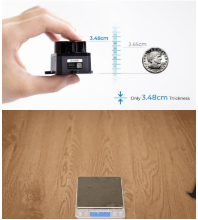 DTOF激光雷达采用了高性能短脉冲功率905nm激光器, 光源肉眼不可见,对环境光的抗干扰能力强;水平360°2D形态扫描,可实现12米的远距离探测;精确度±45mm,体积小(尺寸38.59 x38.59 x 34.80mm),是目前市面上重量较轻、尺寸较小的一款激光雷达。