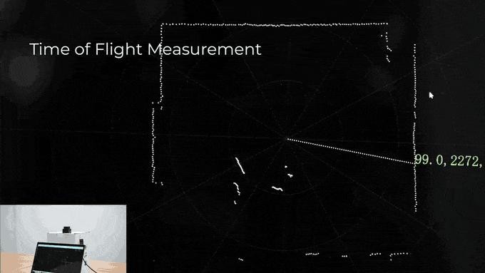 LD19测距核心采用DTOF技术,可进行每秒4500次的测距。每次测距时,向 外发射出红外激光,激光遇到目标物体后被反射到单光子接收单元即SPAD芯片。由此,我们获取到了激光的发出时间和单光子接收单元收到激光的时间,两者的时间差即光的飞行时间,飞行时间再结合光速即可解算出距离。