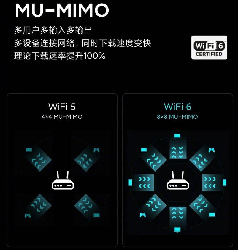 所谓WiFi 6(原称IEEE 802.11.ax),指的是第六代无线网络技术标准。2018年10月,WiFi联盟正式确定了WiFi6标准;2019年9月16日,Wi-Fi联盟宣布启动Wi-Fi 6认证计划,该计划旨在使采用下一代802.11ax Wi-Fi无线通信技术的设备达到既定标准。与WiFi 5相比,WiFi 6拥有速度更快、延时更低、容量更大、安全更高、功耗更低等优势。