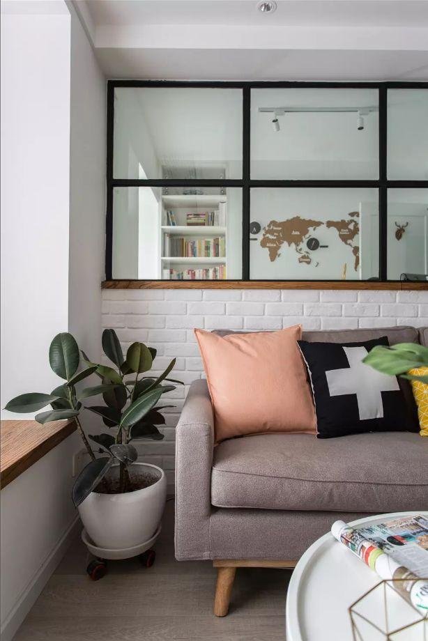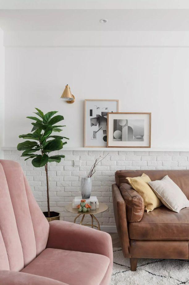 给白色的文化砖加上了做旧的造型,对于喜欢北欧风的屋主来说,这样的一面文化砖沙发背景墙是非常有格调和设计感的。