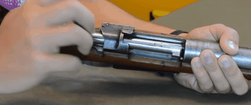 1889还有个很奇怪的特征,我们看上边这个动图,它的击针是在枪机复位的时候挂起,而正常毛瑟转栓开锁的时候挂起击针。换言之1889这个特征更像是恩菲尔德,优点是开锁时没有额外阻力,理论上拉栓速度能加快。缺点是往前推栓时有额外阻力,左手需要紧握护木,容易破坏瞄准线。